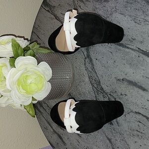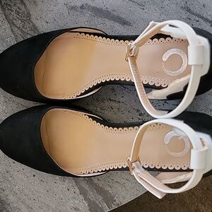 Journee Chandra Pumps block heel black Faux suede white trim size 8.5