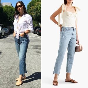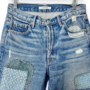 GRLFRND Helena Patchwork Jeans Lean On Me Embroidered Straight Leg Size 26