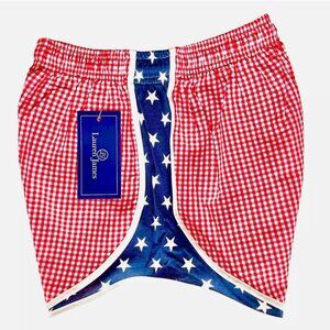 NWT! NEW! LAUREN JAMES SHORTIES RED GINGHAM BLUE STARS USA SHORTS WOMENS SIZE XS