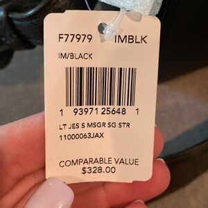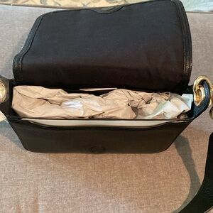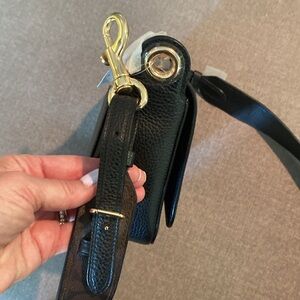 NWT Black Coach Messenger Black pebble leather with signature dark brown strap.