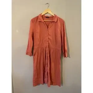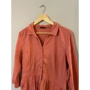 Eileen Fisher Linen Blend Salmon Pink Shirt Dress
