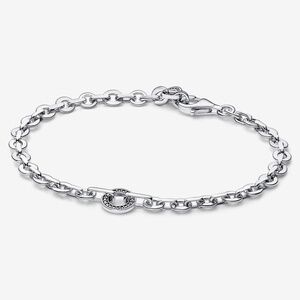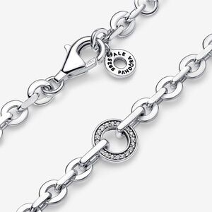 Elevate your signature style with the Pandora Signature Pavé Bold Chain Bracelet. Crafted in sterling silver, the bracelet features a single moveable circular shape in the middle, set with sparkle and microbeads for an eye-catching effect. The link chain is made up of oval and rectangular links for a chunky geometrical look. An essential style in every collection, this easy-to-wear adjustable piece stands out on its own or can be stacked with other chain bracelets.
