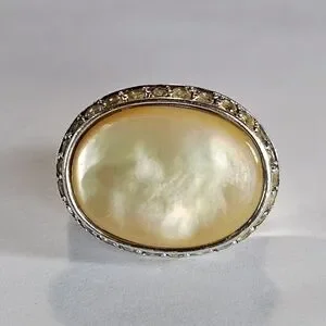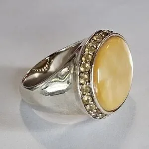 Vintage Mother of Pearl & Citrine Halo Ring in Sterling Silver Size 7! 😍