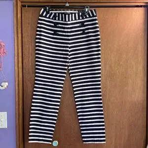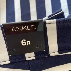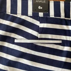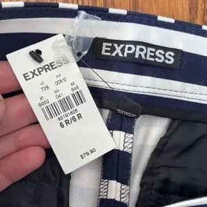 NWT express ankle pants. Navy and white stripe. Navy buttons. Brand new never worn. New condition. Size 6R