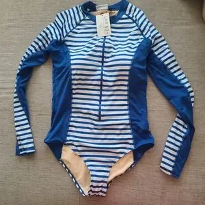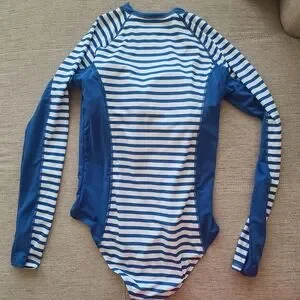 CABANA LIFE Exclusive Road Map Blue/White Stripe Long Sleeve Swim Unisuit Sz Med