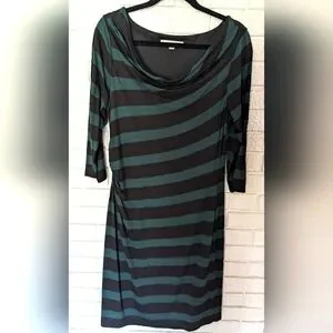 Size Large Tall stripe knit dress. 3/4 sleeves, slouch neck line, soft and comfortable. Lined, wearable in all seasons. Pullover style, feels like wearing a t-shirt but so cute.