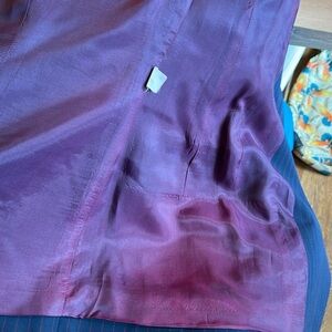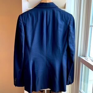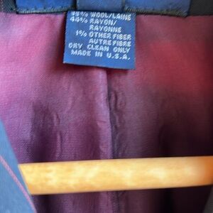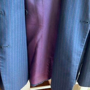 This Vintage Ralph by Ralph Lauren Pinstripe Double Breasted Lightweight Wool Blend Blazer 4 is in Great Preloved Condition! Zero holes, tears, or defects. Only a bit of light fading on sides of purple lining, not noticeable wearing, or hanging jacket over a chair. Gently preloved vintage. Gorgeous navy with red pinstripes puts together so many looks! Functional outer lapel pocket.