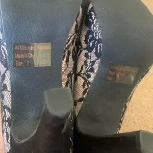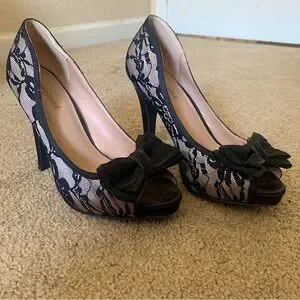 Charming Charlie Blade and Nude Lace Bow Tie Heels