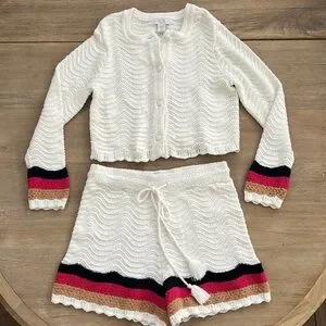 House of Harlow 1960 Crochet Sweater and Shorts Set Medium Large