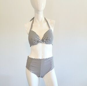 H&M Retro Bombshell High Waist Halter Neck Two Piece Bikini Sz 36C/12