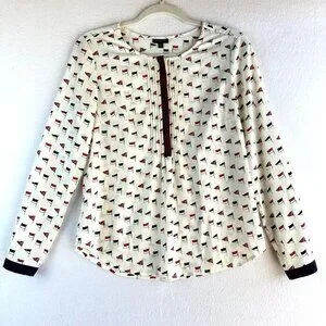 Talbots Shirt Womens Size 6 Petite Small Cream Nautical Coastal Blouse Travel