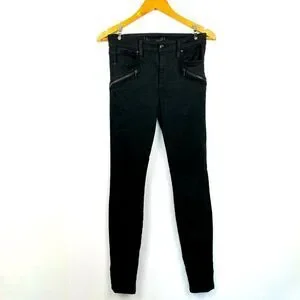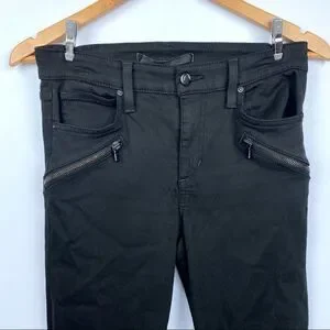 A sleek silhouette set apart with decorative zippers and five traditional pockets., Belt loops, Zip fly with button closure, Five-pocket style, Decorative faux zip pockets, Skinny fit. Good Condition!