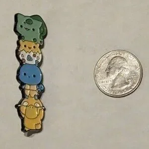 Introducing the "Stacked Cuties: Pokémon Psyduck, Squirtle, Togepi, Bulbasaur Stacker Enamel Pin" - an enchanting collectible that features a delightful stack of some of the most beloved Pokémon. This high-quality enamel pin captures the charm of Psyduck, Squirtle, Togepi, and Bulbasaur, stacked together in an irresistibly cute and kawaii design, making it a perfect addition to any Pokémon fan's collection. Whether you're a fan of the Pokémon anime, games, or simply love collecting unique and adorable items, this pin is a must-have. Crafted with meticulous attention to detail, the pin showcases vibrant colors and a smooth finish, ensuring it stands out on any accessory.