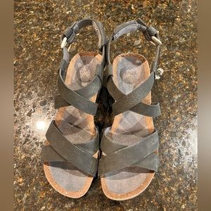 Teva Black Nubuck Strappy Sandals Wedge Heels - Sz 7