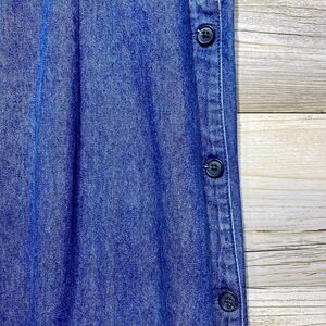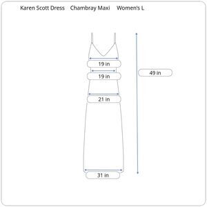 Karen Scott Vintage Chambray Sleeveless Maxi Dress Size L, Side Buttons Cottage