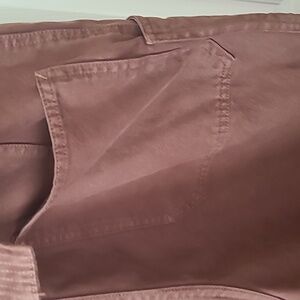 NO STRETCH AT ALL FITS LIKE 12-14, HAS POCKETS FRONT AND BACK