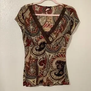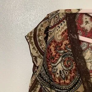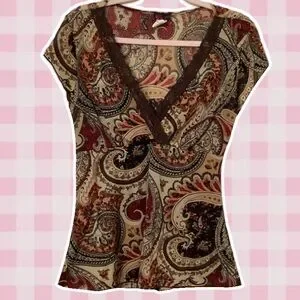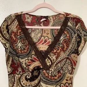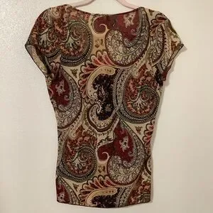 Agenda Vintage Y2K Multicolor Paisley Fairycore Mesh Milkmaid Fairy Blouse Medium