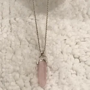 Rose Quartz is the stone of universal ❤️. It purifies and opens the heart to promote love, friendship, deep inner healing and feelings of peace. In excellent condition. 20 in necklace, 1 3/4 in pendant.