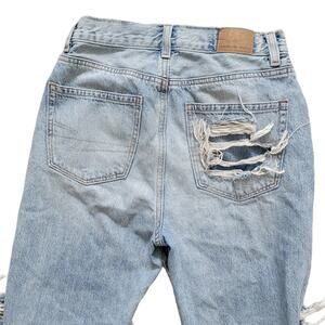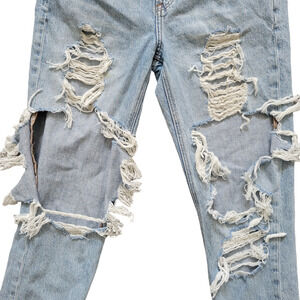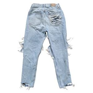 American Eagle Mom Jeans Light Wash Destroyed High Rise Jeans Women Sz US 2 Reg
