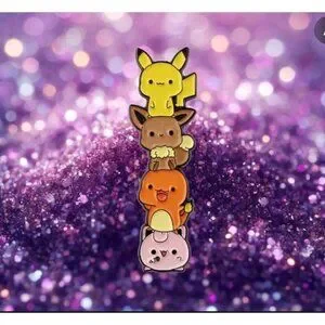 Introducing the "Melodic Stackers: Pokémon Jigglypuff, Charmander, Eevee, Pikachu Enamel Pin" - an adorable and whimsical collectible that features a delightful stack of some of the most beloved Pokémon. This high-quality enamel pin captures the charm of Jigglypuff, Charmander, Eevee, and Pikachu, stacked together in a cute and kawaii design, making it a perfect addition to any Pokémon fan's collection. Whether you're a fan of the Pokémon anime, games, or simply love collecting unique and cute items, this pin is a must-have. Crafted with meticulous attention to detail, the pin showcases vibrant colors and a smooth finish, ensuring it stands out on any accessory.
