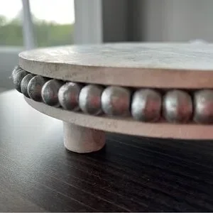 Lightly used rustic display piece. Round section is about 7 inches across, 8 inches with side detail.