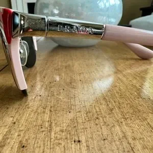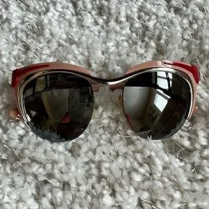 In excellent condition with case. As worn by Dakota Fanning in green, last pic. From early 2000’s. SPR 610 pink, silver and red with slight cat eye and mirrored lens.