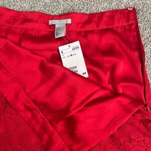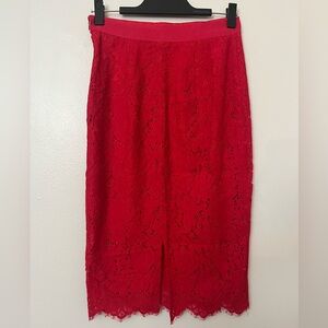 H&M NWT Red Lace High Waist Midi Skirt