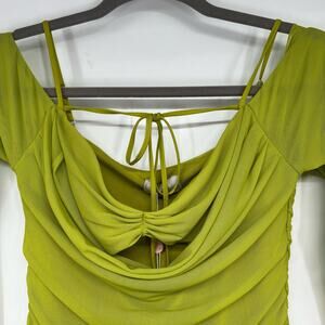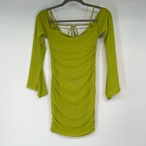 NWT Oh Polly Odyssey Fluted Sleeve Mini Dress Women's Size 8 Green Stretch Mesh
