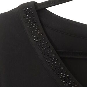 Apt 9 1X black embellished top. Pretty black sparkle around v-neck. Great staple that will pair with so many things. Flattering style and fit. Super cute top.