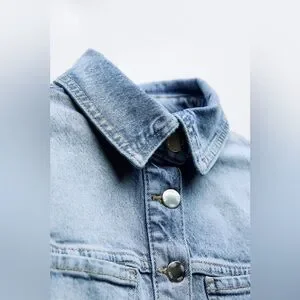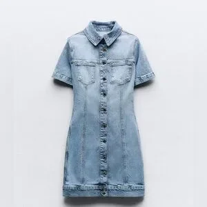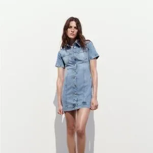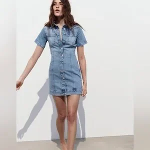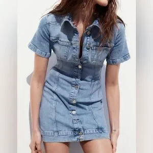 Zara Dress mini denim jeans button up collar casual short sleeve