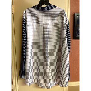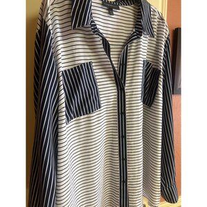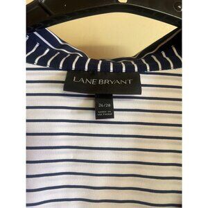 Lane Bryant Navy & White Striped Button-Up Shirt Size 26/28 Polyester