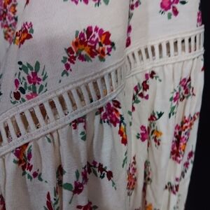 Old Navy white floral long sleeve blouse with a tie at neck area