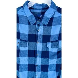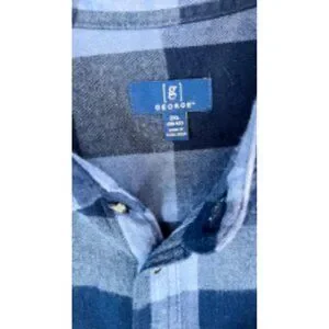 George Men's Navy | Blue Plaid Shirt Size: 2XL