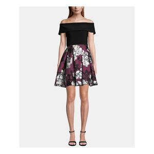 BETSY & ADAM Womens Short Sleeve Off Shoulder Mini Formal Fit + Flare Dress