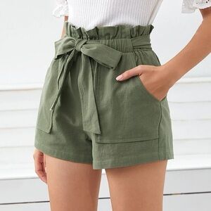 Boho Paperbag Belted Shorts high waist with pockets - olive green