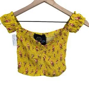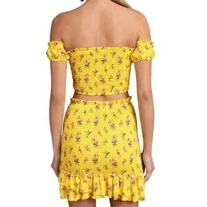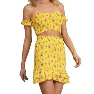Blue Life yellow floral smocked secret crush last night set extra small MSRP 204