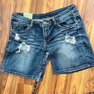 Machine Distressed Low Rise Denim Jean Shorts – Size 30 – Frayed Ripped Style