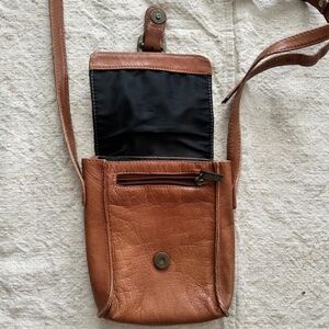 Lovely 90s Wilson’s crossbody bag. Vacation ready little bag with magnetic closure. Has zipper pocket at the front and an open pocket on the back. Some wear on the edges but still in good condition.