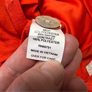 Cute floral embroidery on a relaxed boho orange red blouse with cute shell buttons