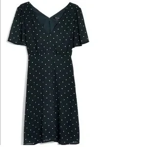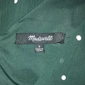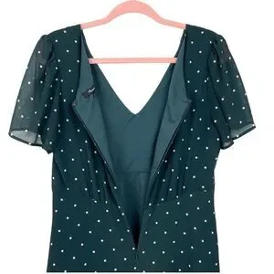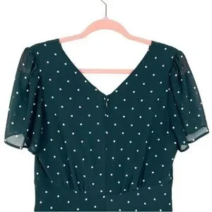Madewell green and white dot smocked shoulder v neck dress in smoky spruce, size 0