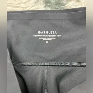 Athleta Women's Salutation Stash Pocket 7/8 Tight Black White Leggings Sz Medium
