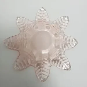 Vintage Light Pink Snowflake Glass Hobnail Bon Bon Candy Trinket Dish 7 Inches