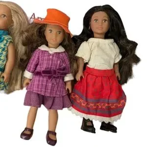 2. Rebecca Rubin American Girl Mini Doll 6.5” BeForever. RETIRED. Painted eyes 1914 replica plum colored outfit. Gorgeous brunette hair. Release date 2014.