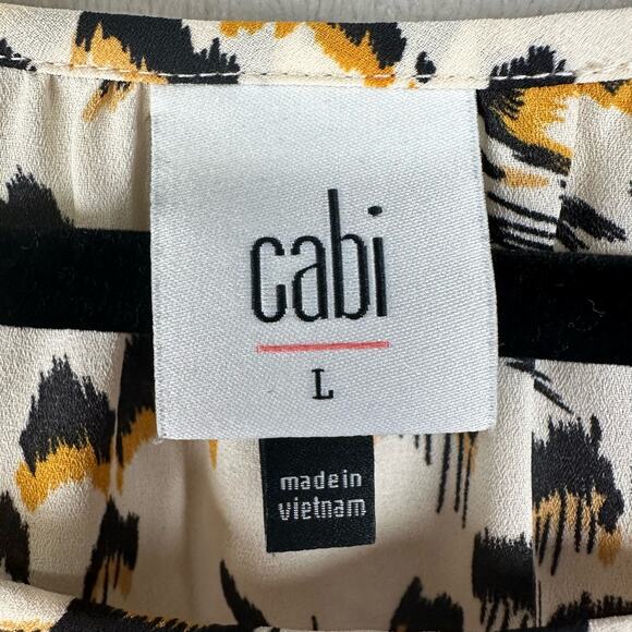 Cabi Top Womens Large Round Trip Safari Leopard Print Long Sleeve Blouse Career