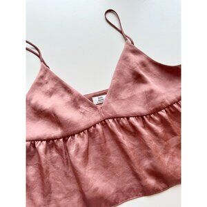 Aritzia LITTLE MOON Lover Nutmeg Brown Satin Cropped Peplum Camisole, Size XS