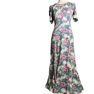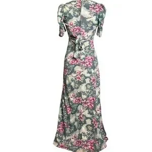 Vintage, retro, tropical, Hawaiian, floral, maxi, dress, short sleeve, spring, summer, travel,70s