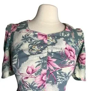 Vintage 70s Maxi Dress Hawaiian Tropical Short Sleeve Juniors Sz 11 Floral