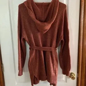 Maurices hooded open front cardigan with belt, burnt orange, large, EUC