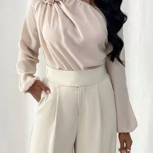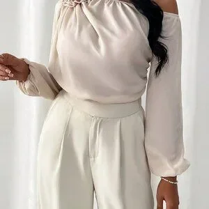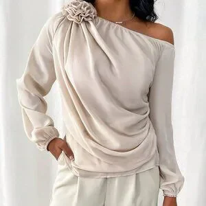 Apricot Elegant Women's Irregular Shoulder Shirt With 3d Flower Decoration
