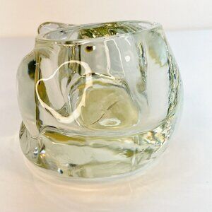 Vintage Indiana Glass Sleeping Cat Crystal Votive Handmade Candle Holder USA